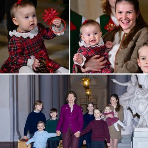 Alla nio kungliga barnbarn som hjälpte drottning Silvia att dekorera slottets julgran, såklart! Ja, hela skaran var på plats på slottet under måndagseftermiddagen – till och med…