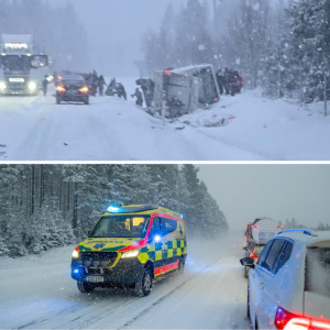 En dubbeldäckare och två bilar var inblandade i en olycka på E4 utanför Skellefteå vid lunchtid på fredagen. Bussen har vält och ligger i diket. – Det…