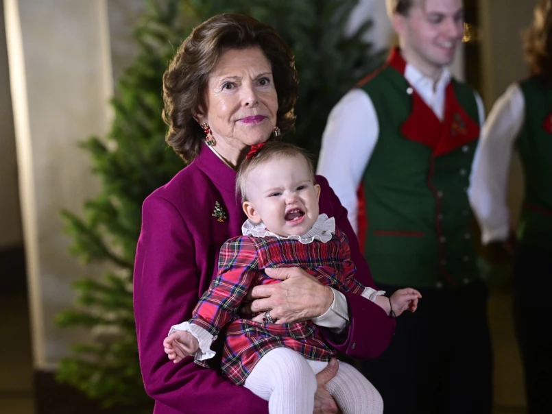 I år var det drottning Silvia som tog emot granarna, i sällskap med samtliga av hennes barnbarn. På bilderna syns prinsessan Estelle, prins Oscar, prins Alexander, prins Gabriel, prins Julian, prinsessan Leonore, prins Nicolas, prinsessan Adrienne och lilla prinsessan Ines som snart får uppleva sin första jul.