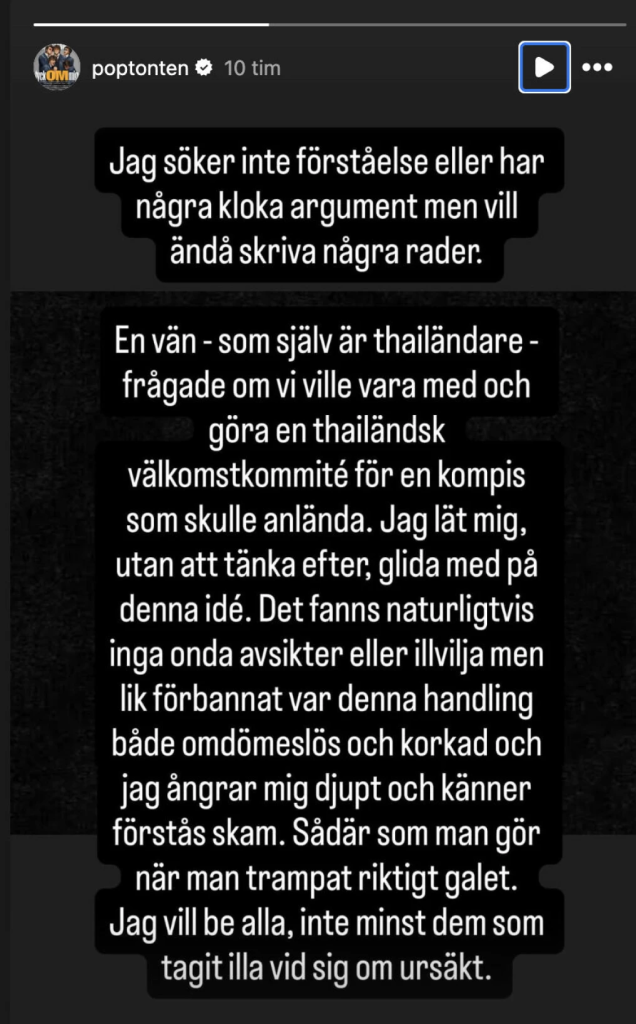 “Det var väldigt bra att inlägget togs ner snabbt eftersom det blev så inihelvete fel och jag skäms och ber om ursäkt (…)”