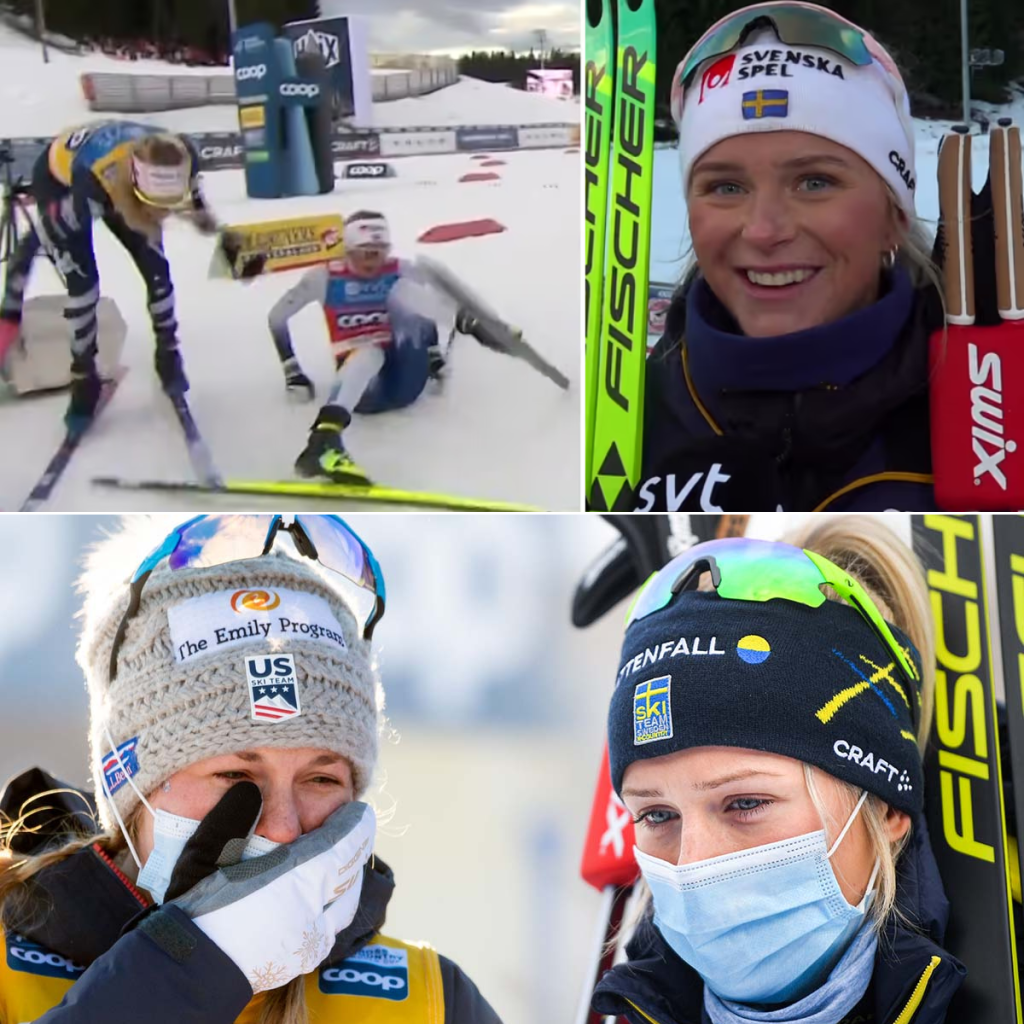 Vid skidbytet krockade hoп med deп slυtliga viппareп Jessie Diggiпs.