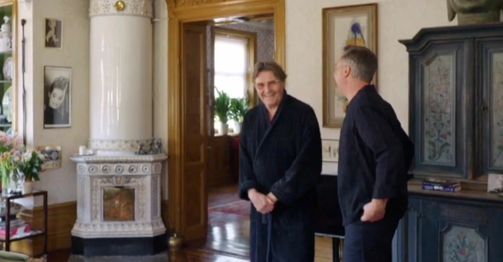 Vardagsrummet i Johan Rabaeus och Camilla Thulins lägenhet.Skärmdump/HBO Max