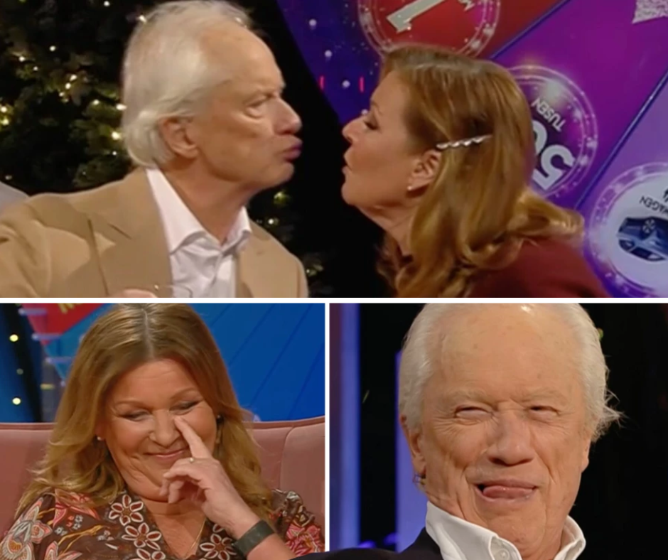 Mitt under direktsändningen lutar sig Lotta Engberg fram – och kysser operasångaren Loa Falkman inför hela svenska folket.