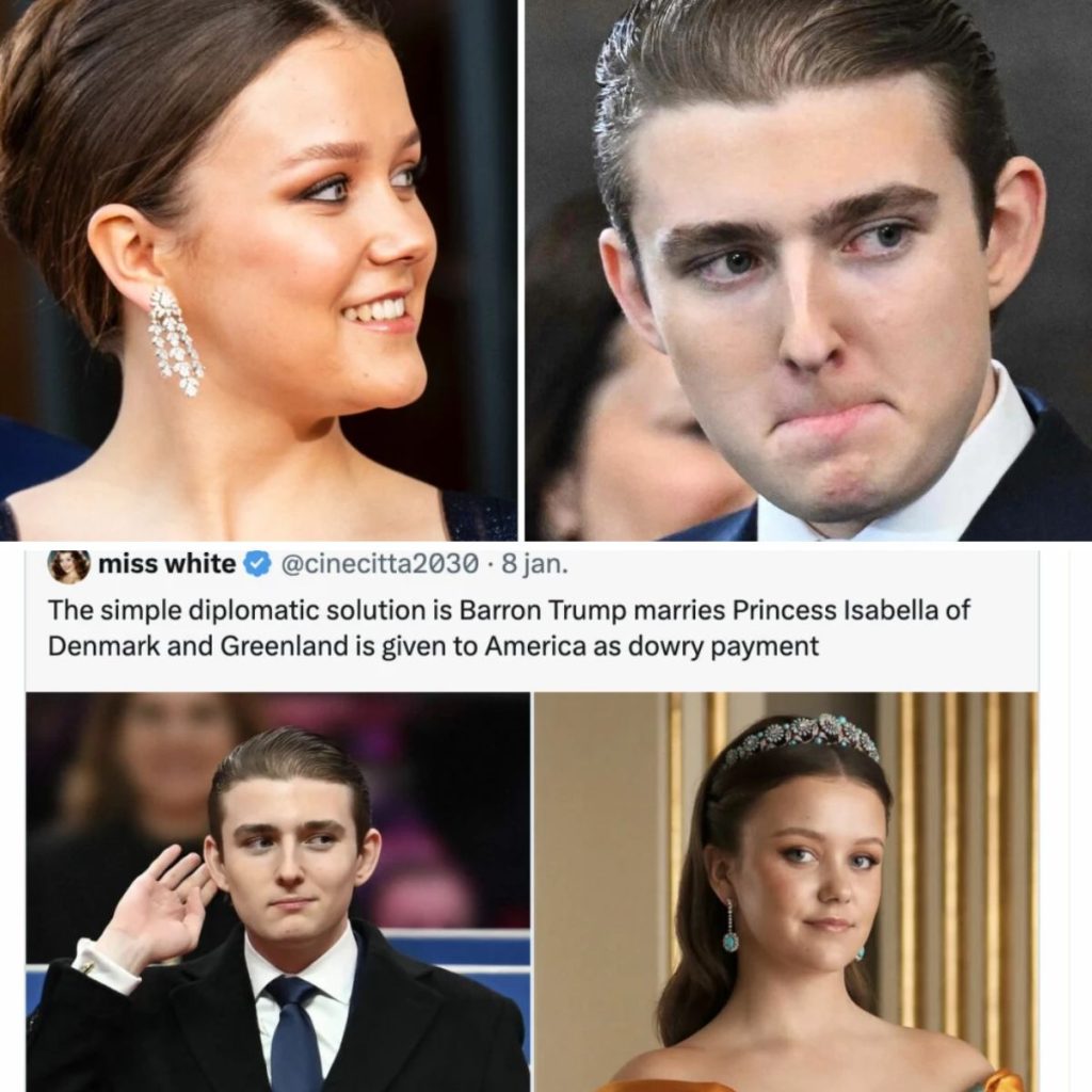“Den enkle diplomatiske løsning er, at Barron Trump gifter sig med prinsesse Isabella af Danmark og Grønland, som skal gives til USA som medgift,” skriver en person i opslaget.