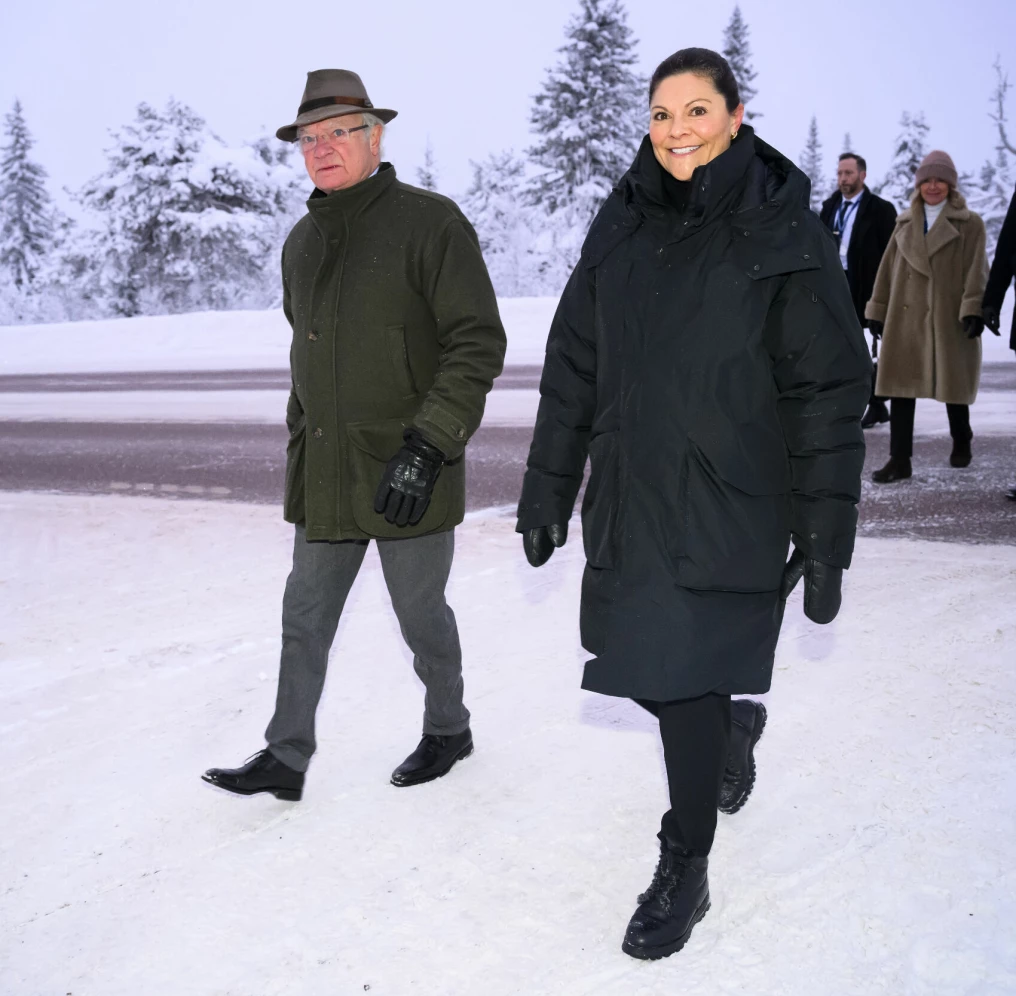 Här är dagens nya bilder på morgonpigga Victoria och kungen – som kanske inte är känd för att vara fullt lika morgonpigg.