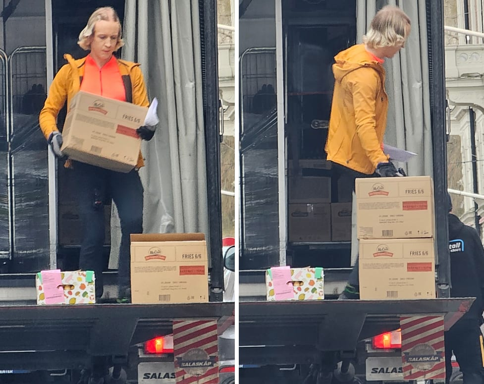 Borna uppskattade att leveransen tog omkring tre minuter. Kring klockan nio hade lastbilen kört vidare.